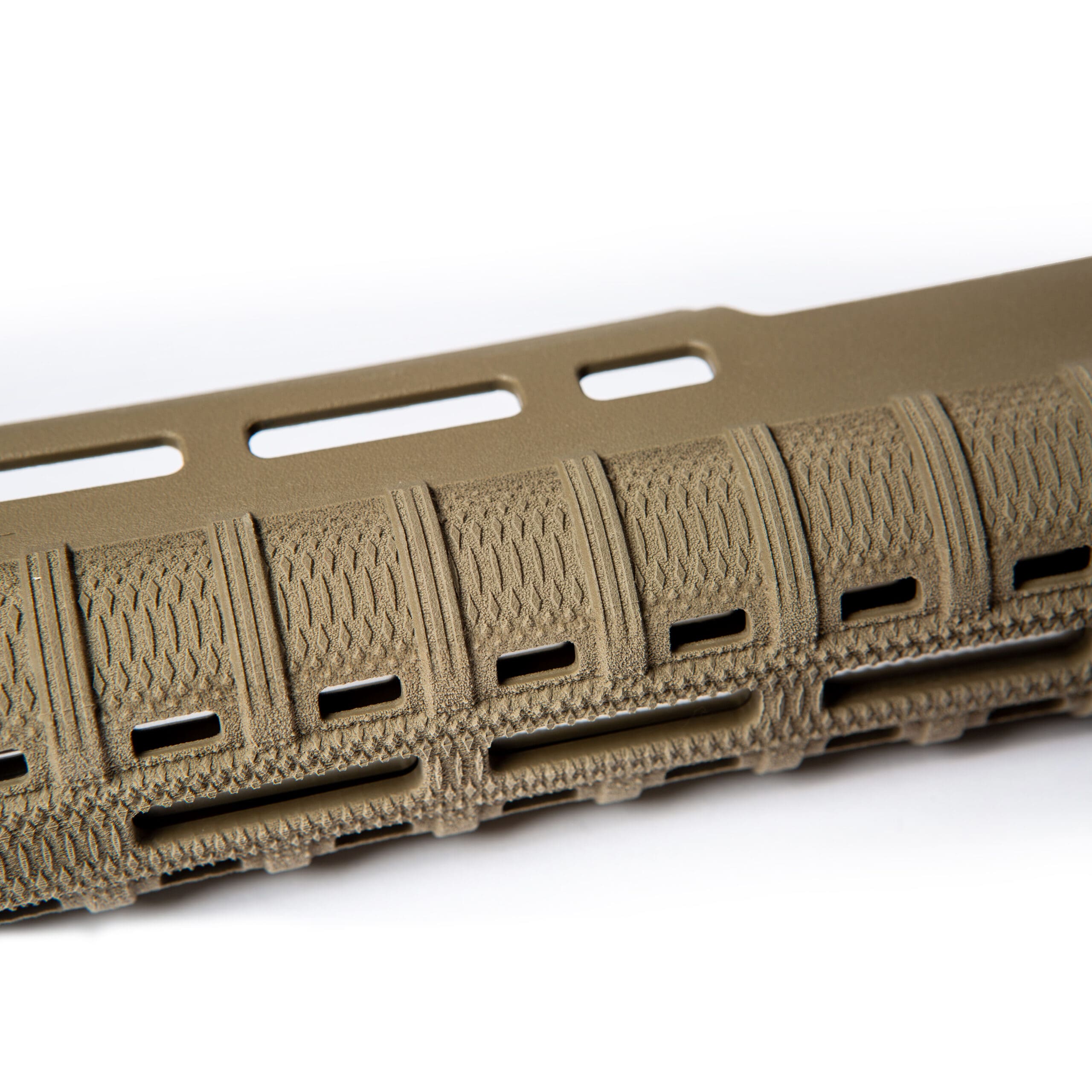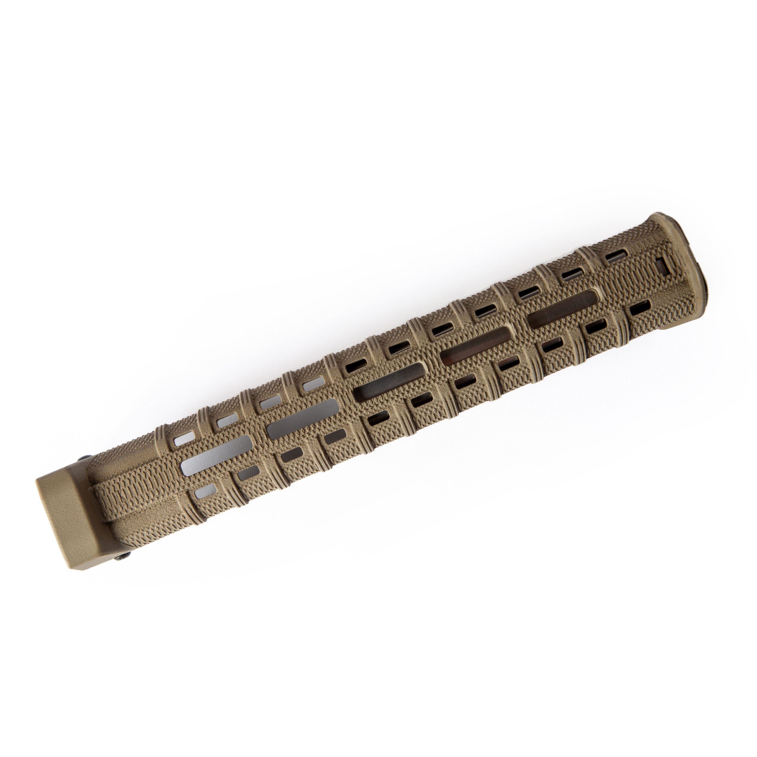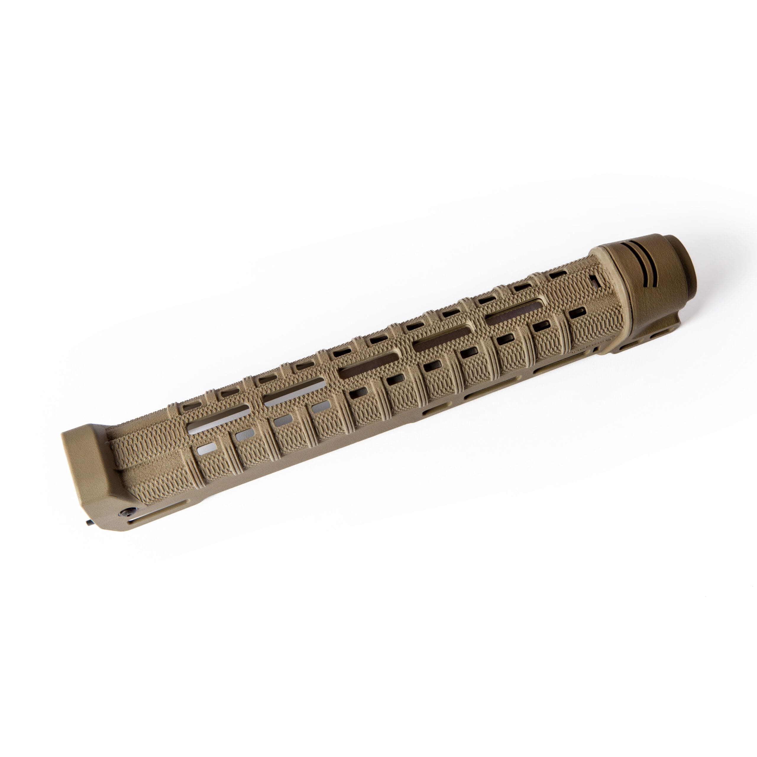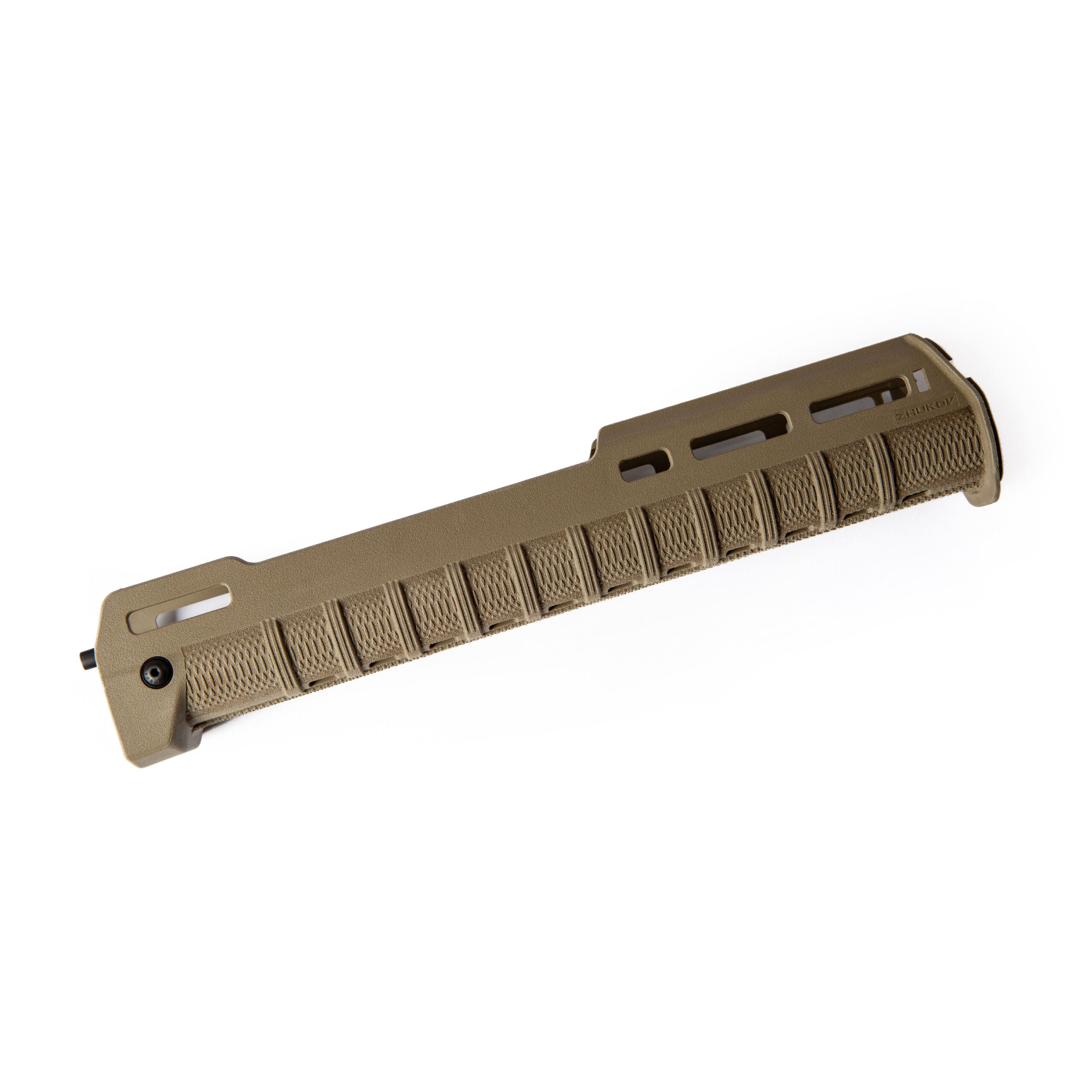 The new front adapter takes the Zhukov to the next level. It fully contours the Zhukov top to bottom, and supports it inside and outside. This eliminates flex in the handguard and adds durability. The integral slots allow a more durable light mounting solution while placing the light further forward, helping to cut town on barrel shadow. The new front adapter takes advantage Nylon 12’s properties along with Multi Jet Fusion additive manufacturing to achieve incredibly difficult geometries and features without sacrificing strength.