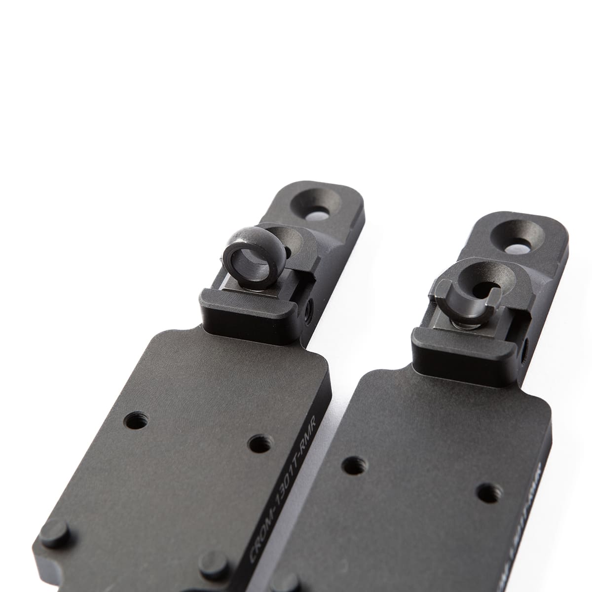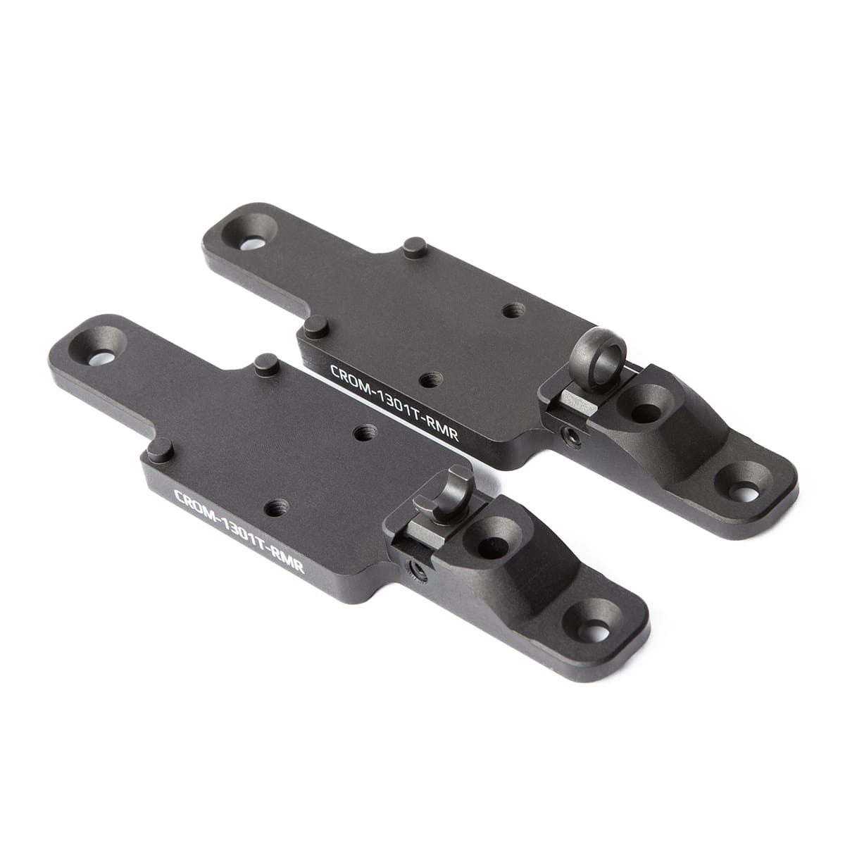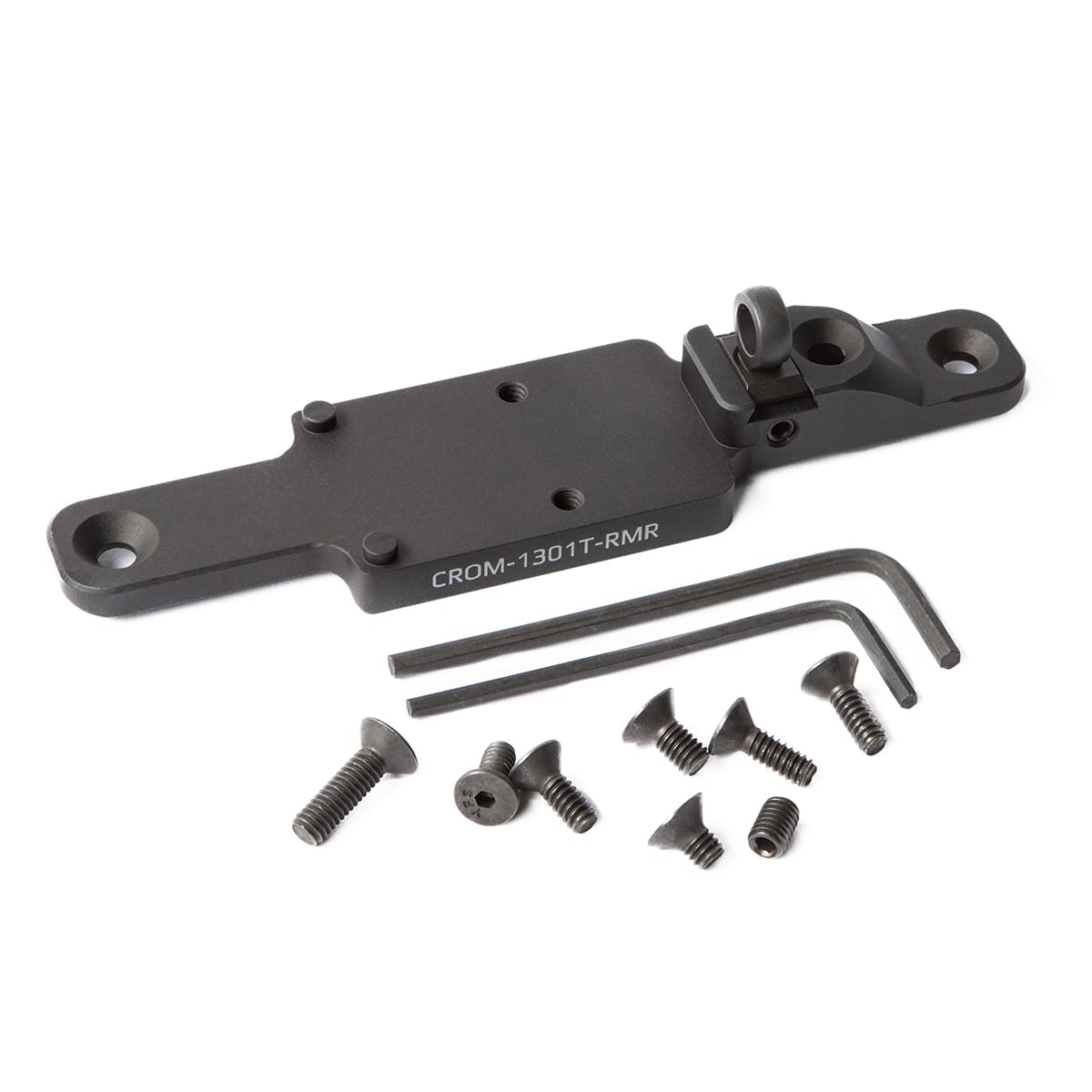The Co-witness Ready Optic Mount (CROM) is a direct mount for attaching a Trijicon RMR to your Beretta 1301 Tactical Shotgun. The CROM replaces the factory plastic rail and rear sight and directly mounts the optic to the shotgun’s receiver. This allows the optic to sit much lower, providing a consistent and proper cheek weld.